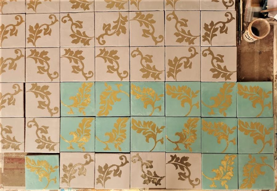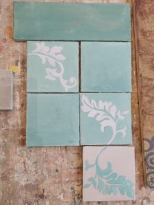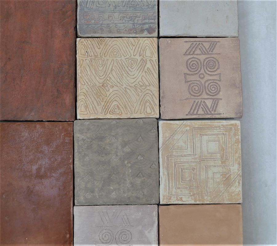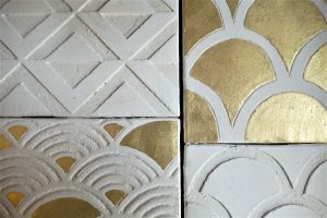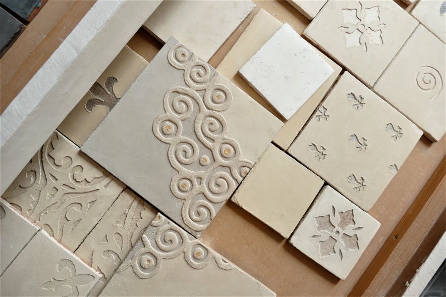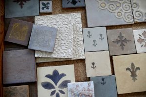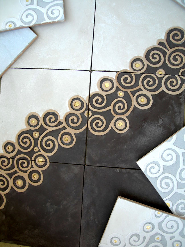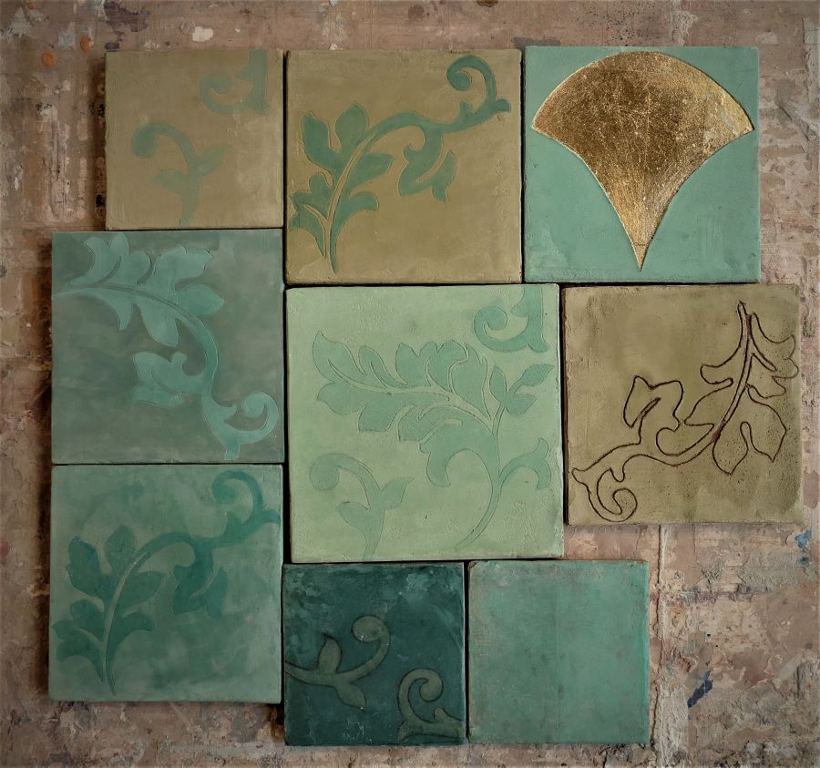 We make our tiles with bespoke colouring, infinite shades and natural camaieu (the light and dark shades mix together) ; they are unique items, especially if they are enriched with frescoes painted decors, engraving (« sgraffito »), metals, patinas or mother-of-pearl.