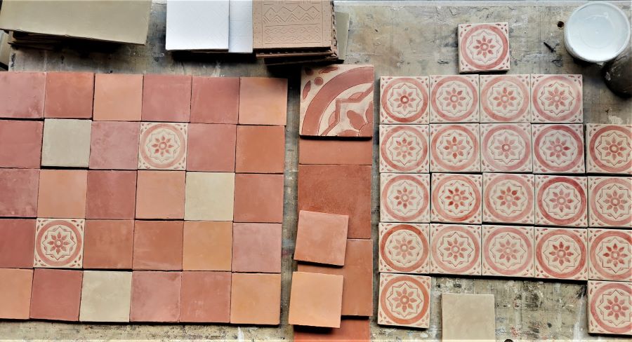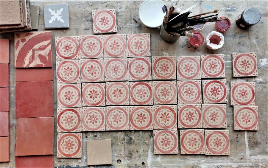 They were created in 2003 after a trip to Caltagirone, in Sicily, famous for its terracotta and ceramics. When we got back to Paris with some terracotta tiles, we designed an exclusive technique for lime tiling decoration.