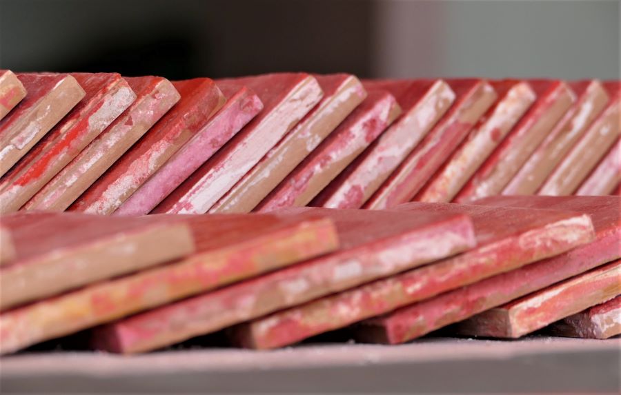 Each edge of each tile is carrefully hand-finished and dried several days before receiving the adapted treatment.